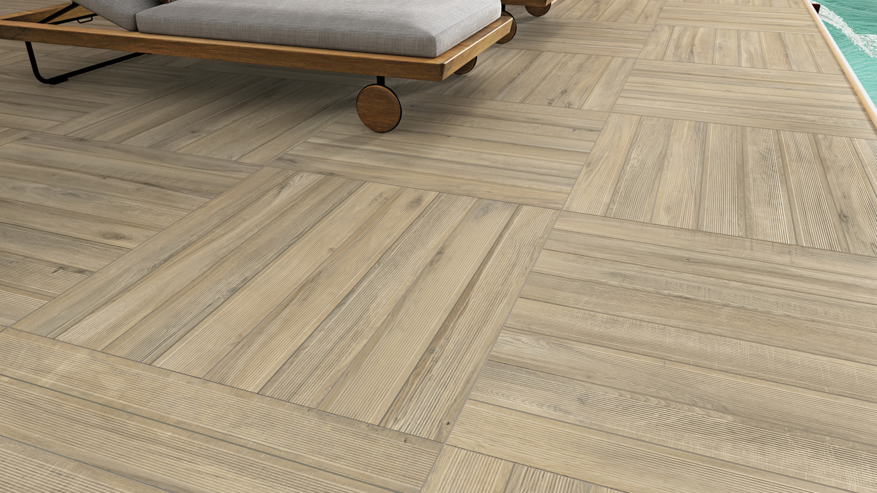 Solução de elevada durabilidade para exteriores com características antiderrapantes e drenagem eficiente da água.